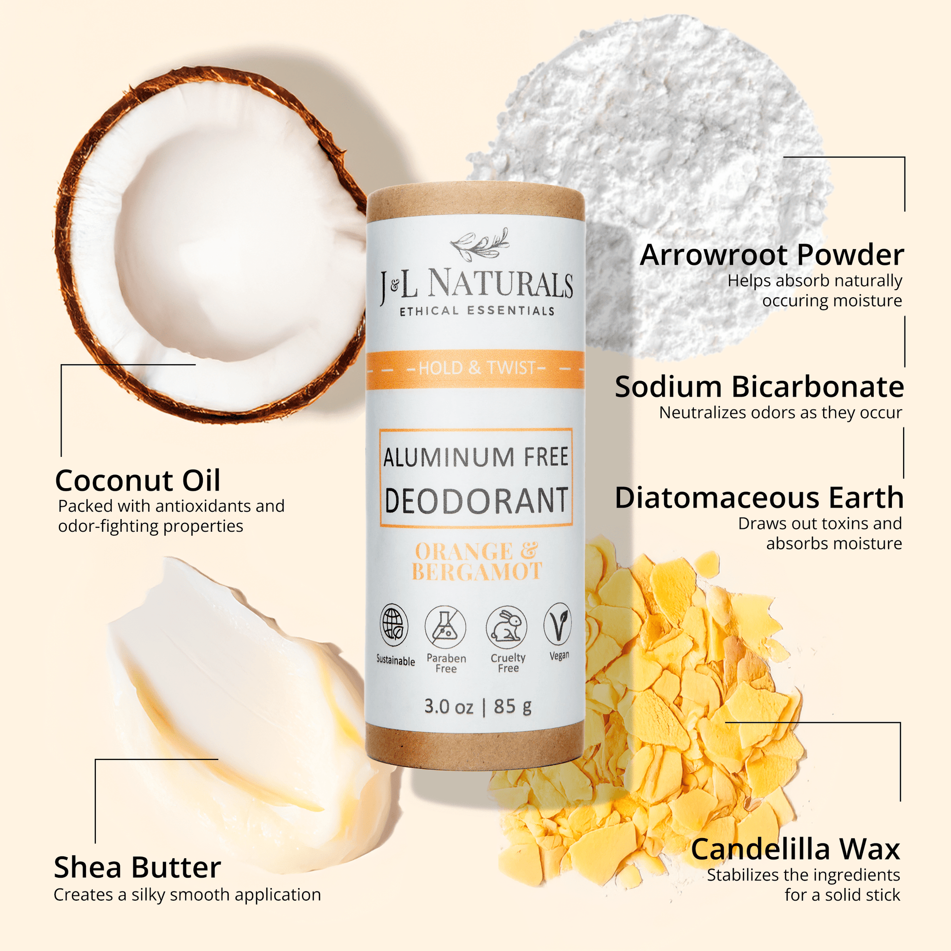 Packed with antioxidants, natural disinfectants, and antibacterial properties to neutralize odors, this Aluminum-Free Deodorant lets your underarms breathe while keeping you fresh all day.